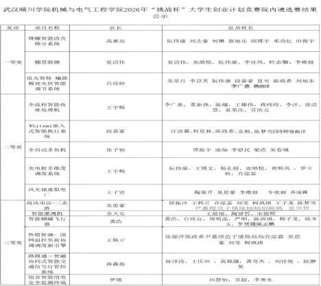 为全面贯彻落实全国两会、全国教育大会和省教育大会部署要求,坚持创新驱动发展,推动科技创新与产业创新深度融合,深入实施科教兴国战略,不断提升国家创新体系整体效能,着力培养德智体美劳全面发展的高素质人才,以实际行动助力教育强国、教育强省建设,机械与电气工程学院于2026年3月25日下午在实2-211举办了湖北省第十六届“挑战杯”大学生课外学术科技作品竞赛院赛。担任本次比赛的评委有机械与电气工程学院党总支书记张丽芳、青年教师张帆、王秀叶、李欣、黄辰臣、李泷、院团总支书记李兰芳、辅导员段芳、李林蔓、刘胜韬和肖明威老师。