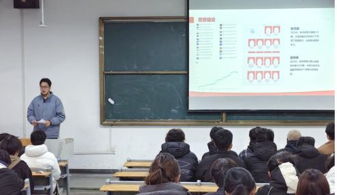随后,团总支副书记王胜鑫同学对年度工作进行了详细汇报。汇报中,他以“数据 + 案例”的形式,系统梳理了院团总支、学生会年度的工作成果:从各支部思想建设的统筹推进,到秘书部、宣传部持续推进思想引领,以及文体、外联、生活部门有效组织开展了各项活动,全面呈现了学院团总支、学生会在全年工作中的担当与作为。同时,针对部分工作开展过程中暴露的问题,王胜鑫同学结合实际情况提出具体的解决方案,包括建立相应管理机制、明确了各环节责任人以强化衔接等,为后续工作提质增效提供了清晰思路。