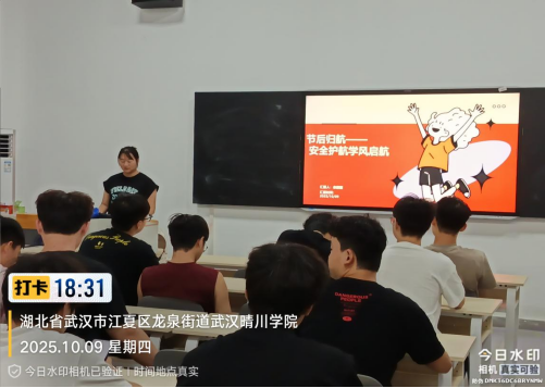 在日常管理上,班会明确健康打卡需每日 18:00 前完成;请假走学习通流程;公共场合着装需得体;同时提醒 10 月 10 日按校历上第六周周五课程,助力新生养成规范习惯。